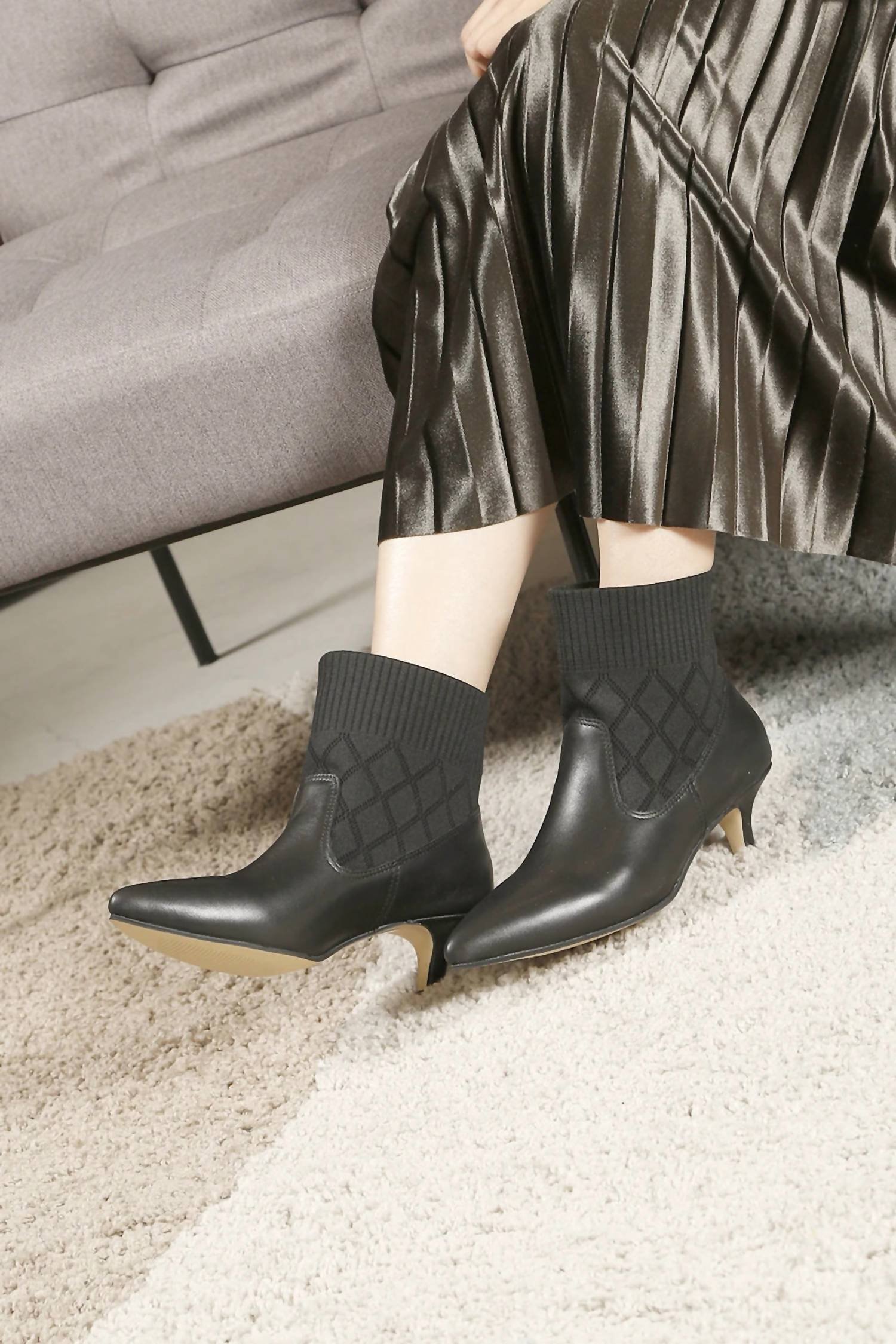 Don’t be deceived, these heels are comfy as can be.A kitten heel for those cold winter months. Soft knit sock around the ankle.