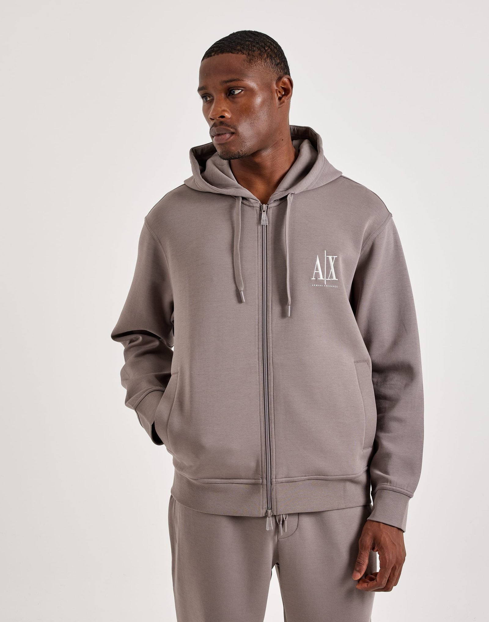The Armani Exchange Updated Icon Logo Fleece Full-Zip Hoodie is a must-have in your fall rotation. This men’s sweatshirt is made from soft cotton and features the brand’s logo embroidered on the front.