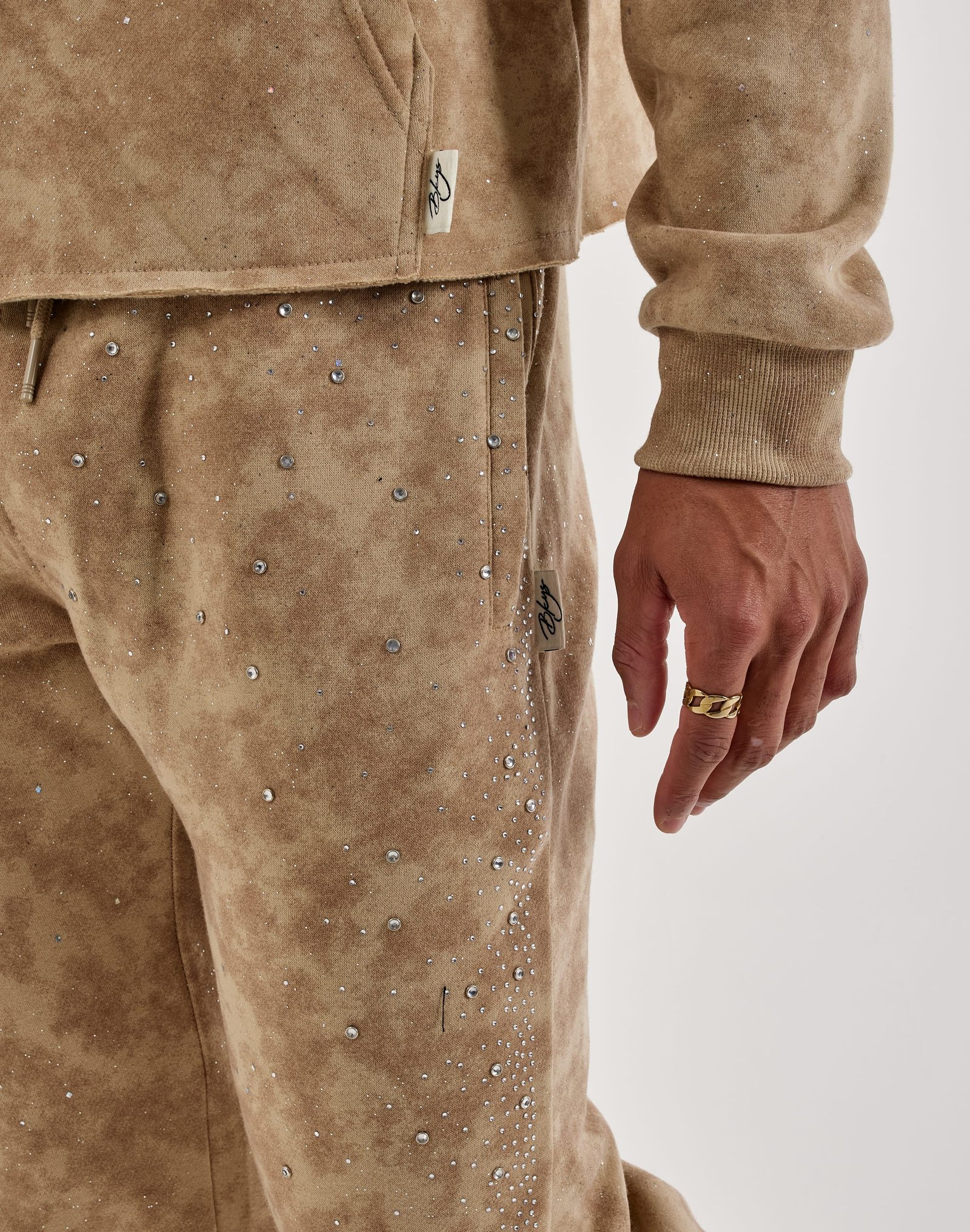 There’s nothing subtle about the BKYS Rhinestone Stacked Track Pants. Featuring sparkling rhinestone accents and a stacked fit, these track pants deliver standout streetwear energy with all-day comfort.