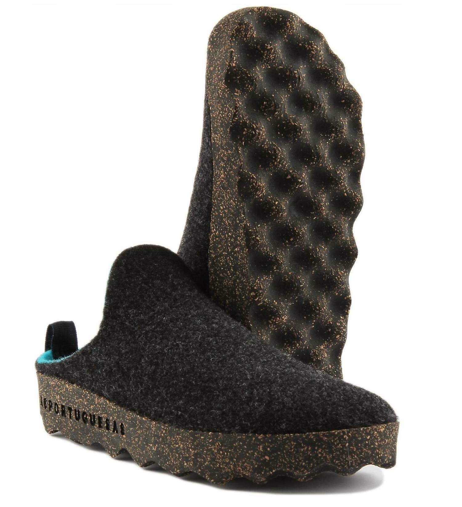 Slip-on sneaker mule featuring a soft wool upper and shock-absorbing cork sole. True to size. Made In Portugal.
