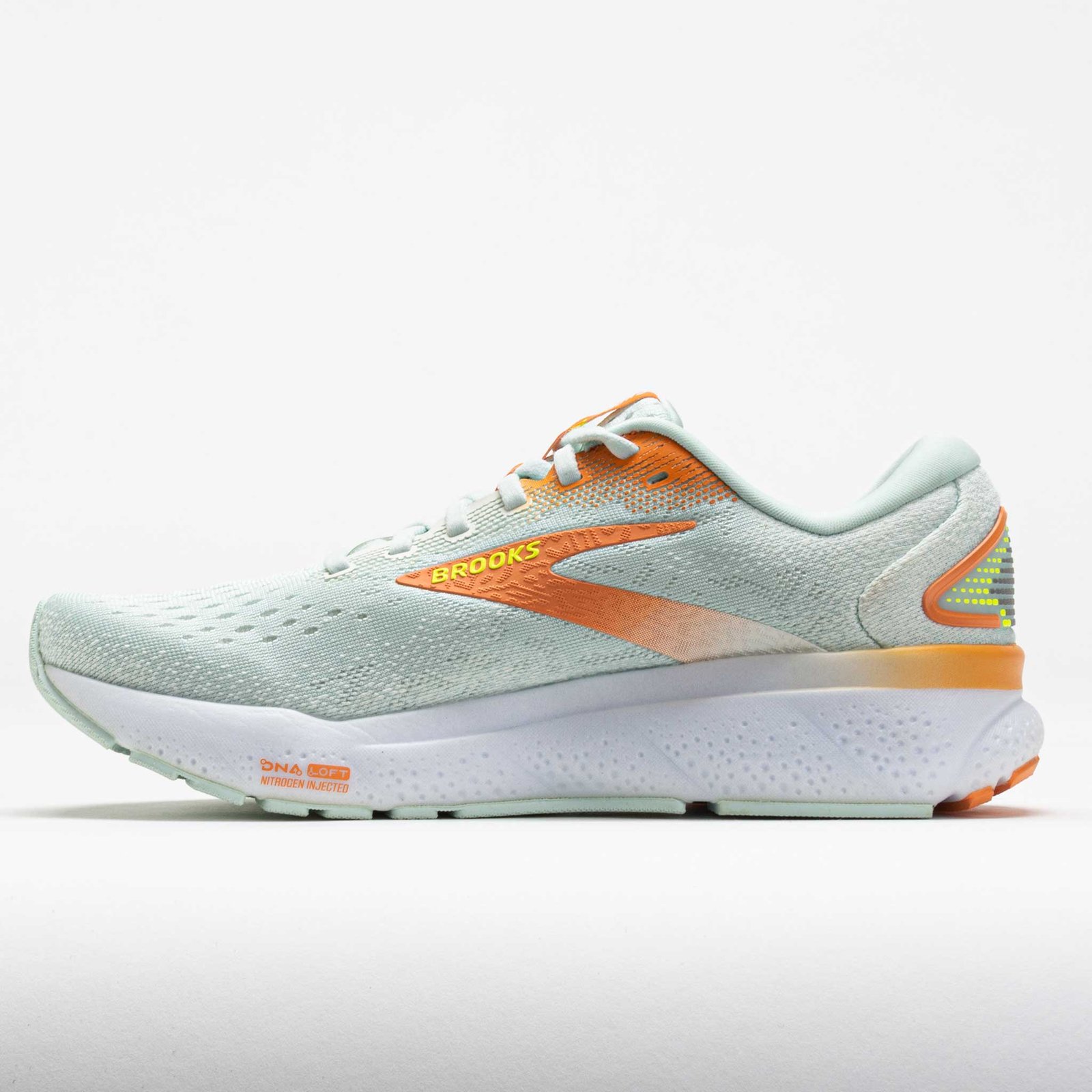 Elevate your daily runs in the Brooks Ghost 16! Smooth and reliable. this neutral running shoe provides lightweight comfort for distraction-free miles. Feel the perfect blend of stretch. structure and breathability in the engineered air mesh upper. Every stride on the DNA LOFT v3 midsole offers soft comfort for long distances. Incredibly light and undeniably smooth. the Brooks Ghost 16 is the best of both worlds!