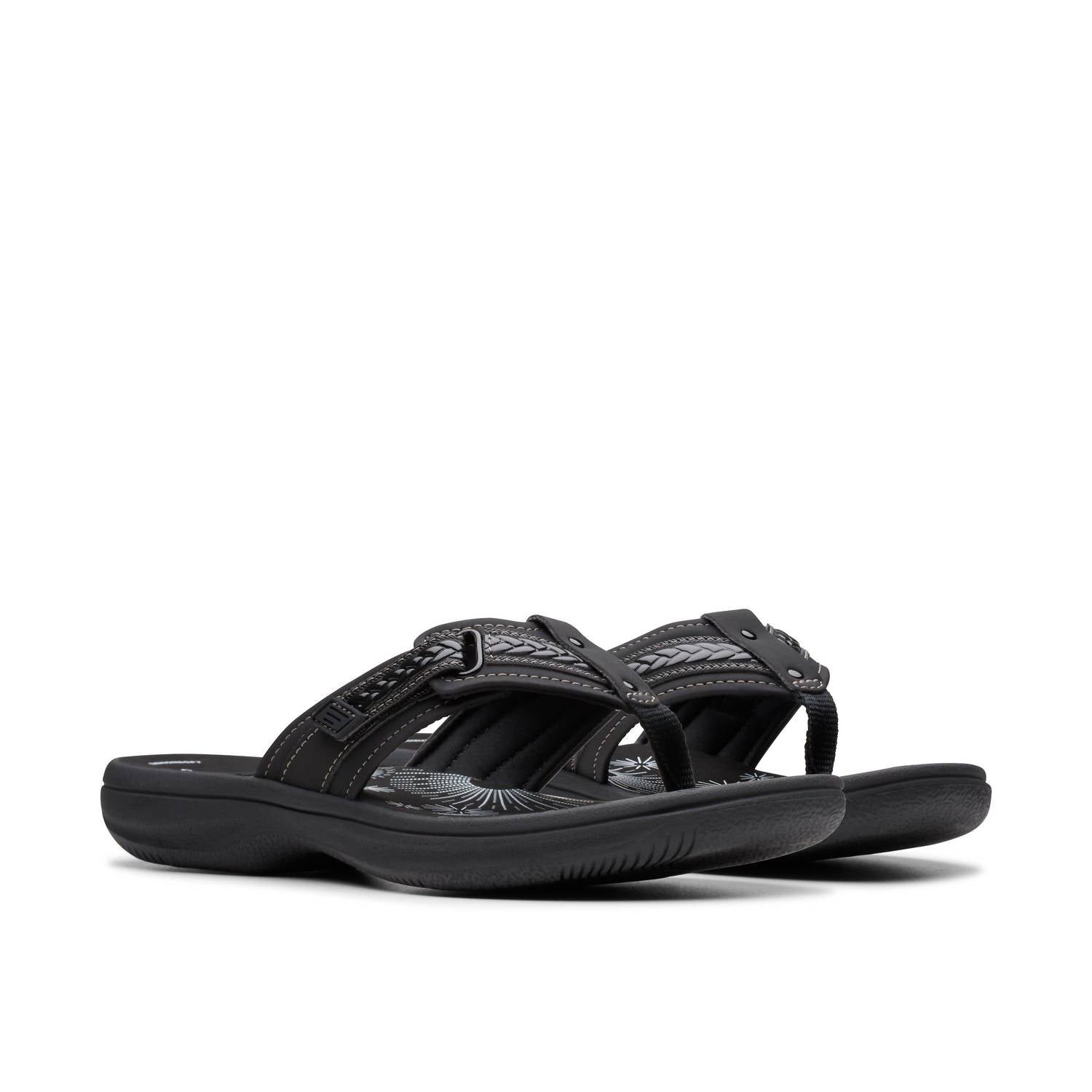 This sandal will take you from brunch to dinner and everything in between.Step into chic comfort with Clarks’ Breezey Sun Sandals, designed for the modern woman. These stylish black sandals feature a sleek design with an adjustable strap, ensuring a customized fit that’s perfect for summer vacations or everyday outings. The flat heel and open toe shape provide both style and ease, making them a versatile addition to your footwear collection. Ideal for any fashion-forward individual, these sandals promise sophisticated elegance.