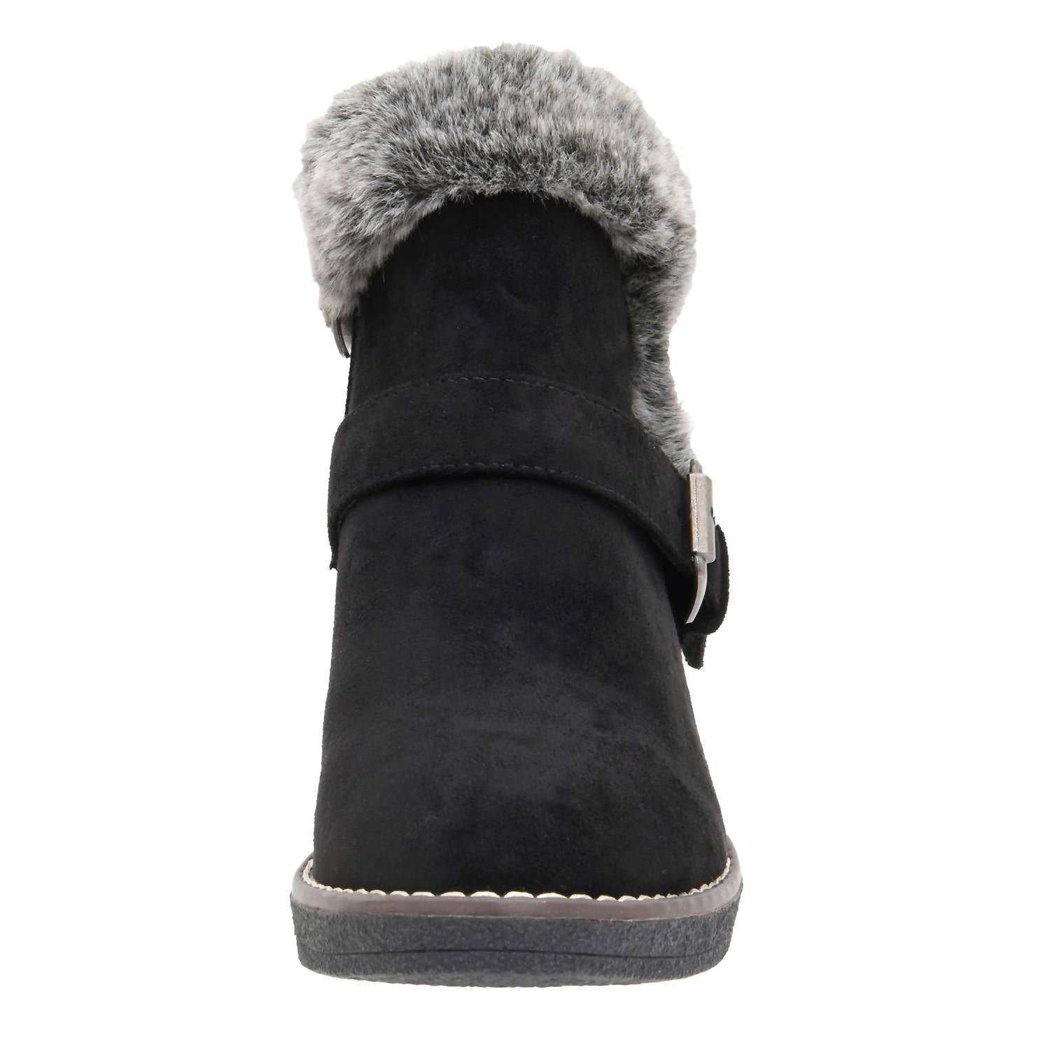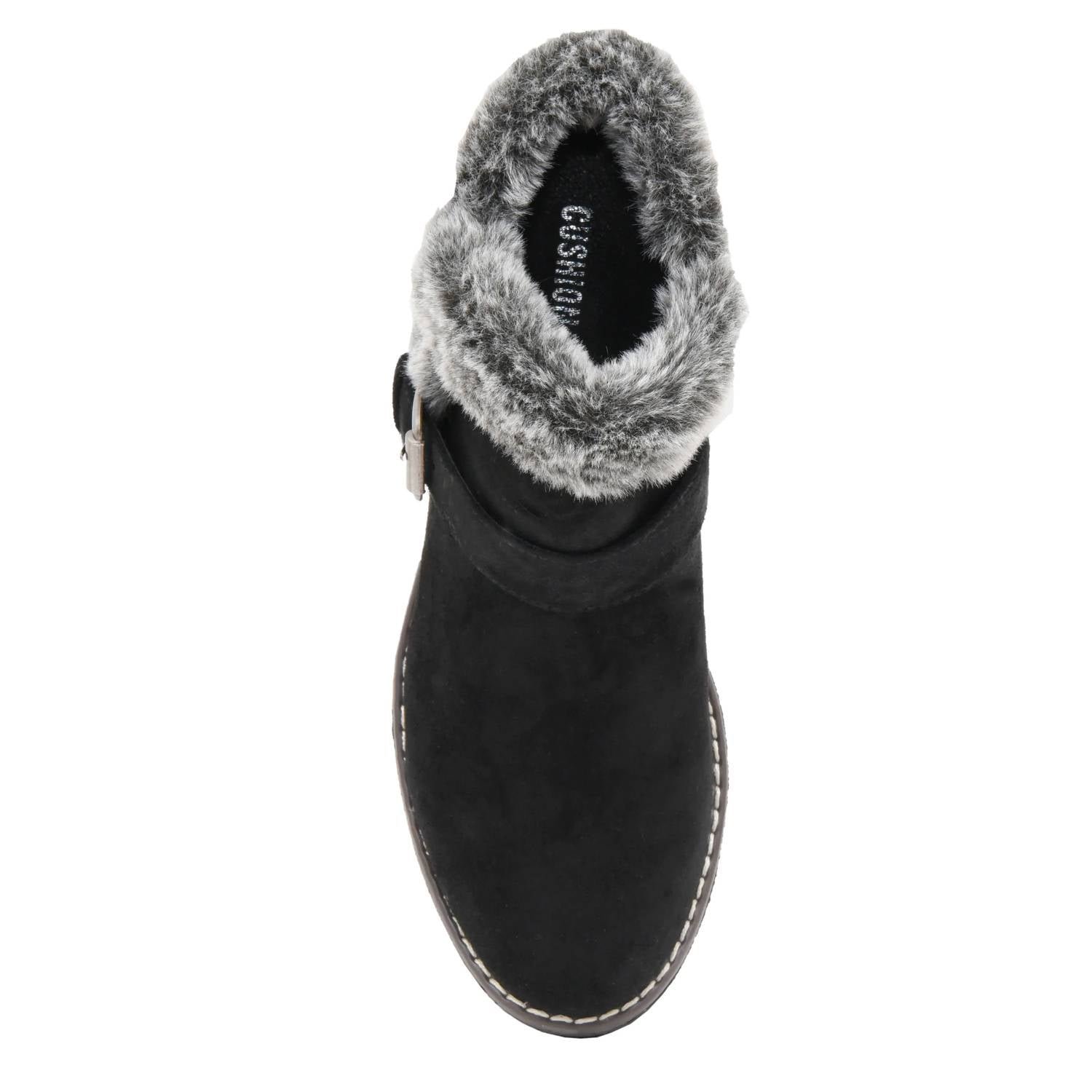 You’ll be wishing for rainy days with these stylish yet functional rainboots.Introducing the Women’s Rhodes Faux Suede Winter Booties by Cushionaire, a stylish choice for the winter season. These booties feature a soft vegan faux suede material with a cozy premium faux fur trim. Designed with a round toe and a comfortable two-inch wedge heel. Perfect for Christmas gatherings or any winter occasion, these booties promise coziness with memory foam insoles.