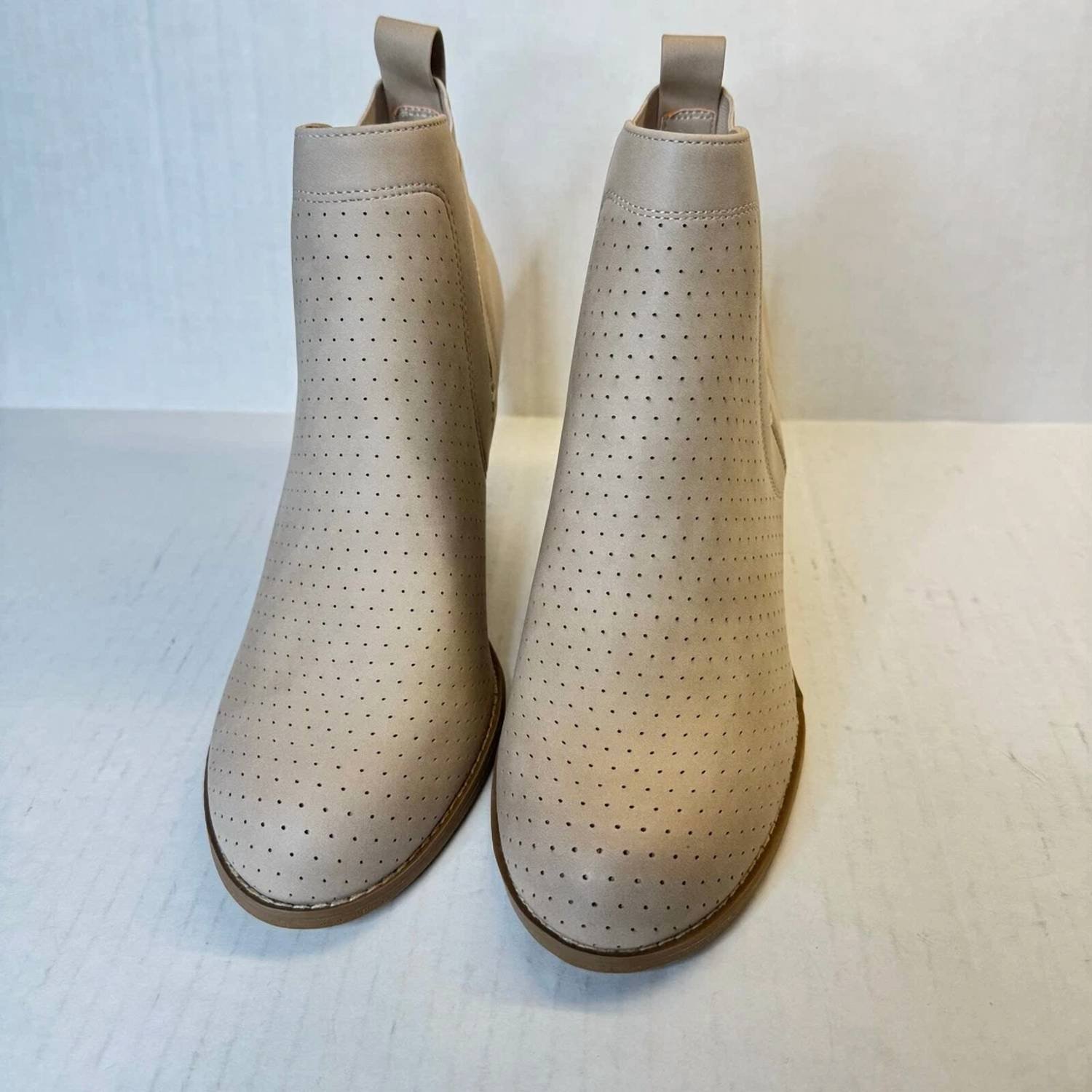 Say hello to the perfect, most versatile boot. The ankle height makes this style easily transition from day to night. Wear them with your favorite skinny jeans and tee for a more laid back look, or pair them with your favorite mini dress and jacket for a night out on the town.Step up your style with the Women’s Vegan Leather Gerdy Bootie by Dolce Vita, a perfect blend of chic design and comfortable wear. Featuring a classic round toe, this ankle bootie delivers both versatility and fashion-forward appeal. Material: Vegan Leather. Color: Beige. Ideal for women seeking a stylish yet ethical footwear option.
