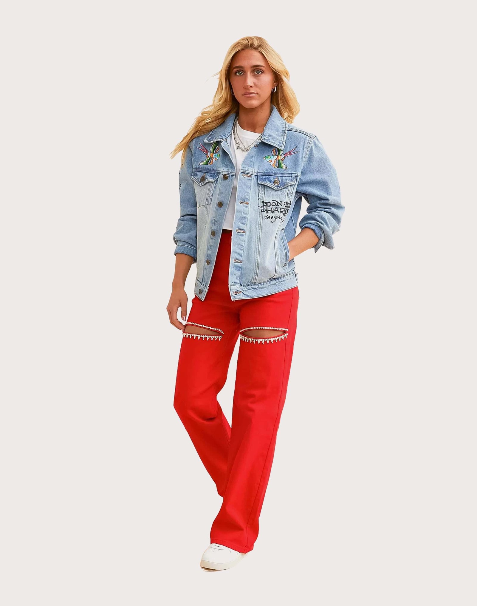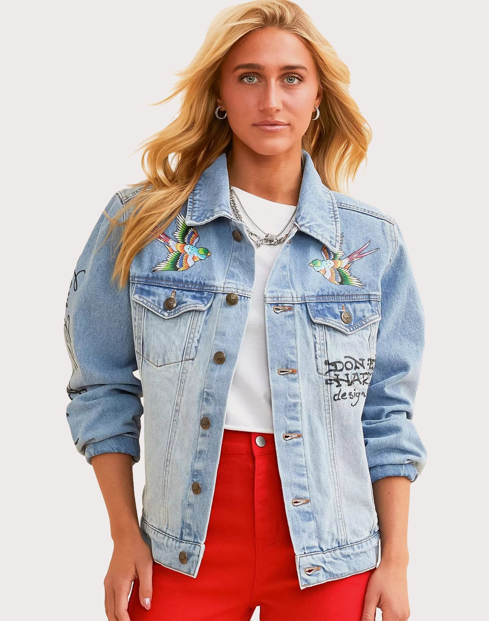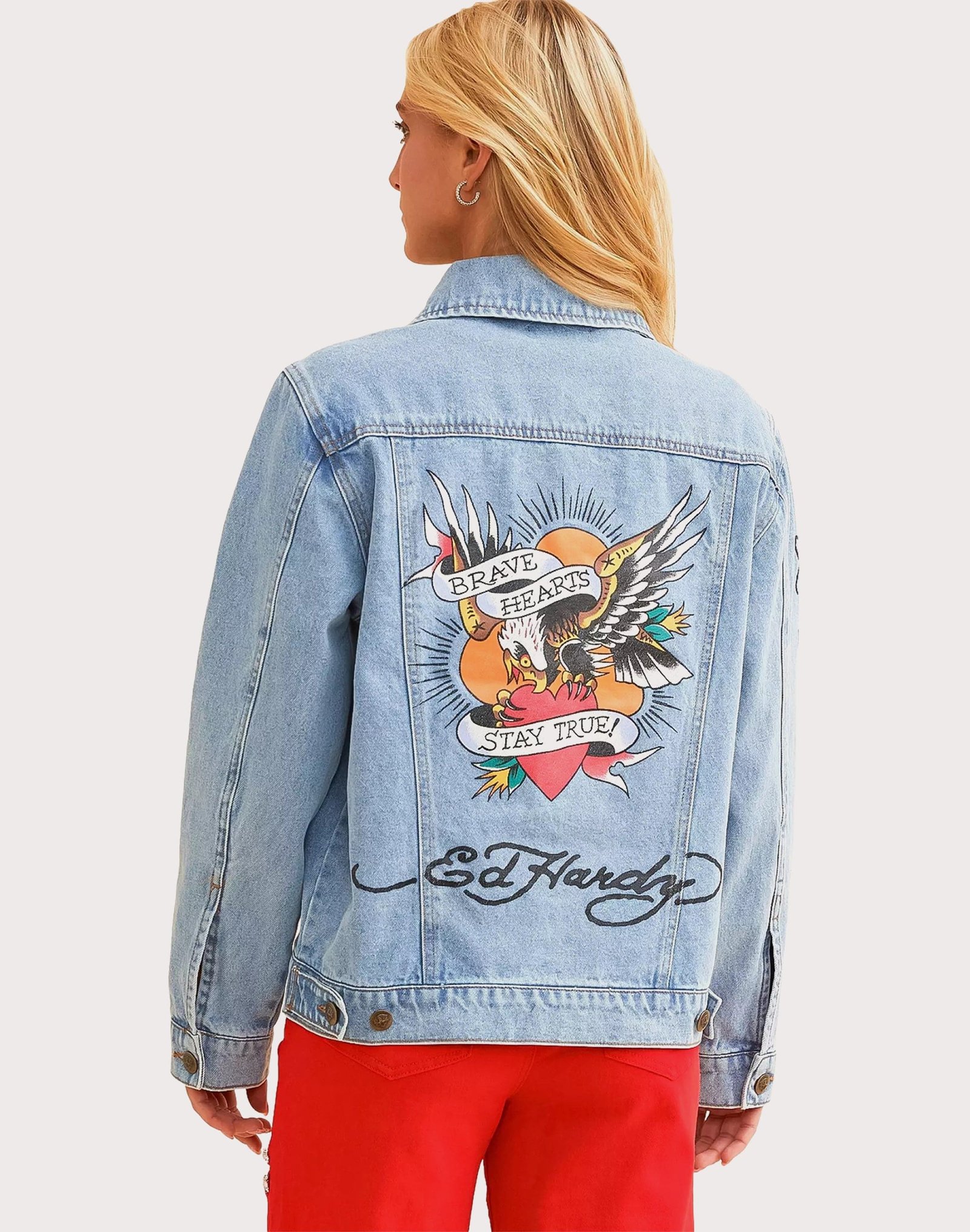 A denim jacket is always needed in the closet! Grab this Ed Hardy Brave Eagle Denim Women’s Jacket to add some unique style and comfortability with each wear.
