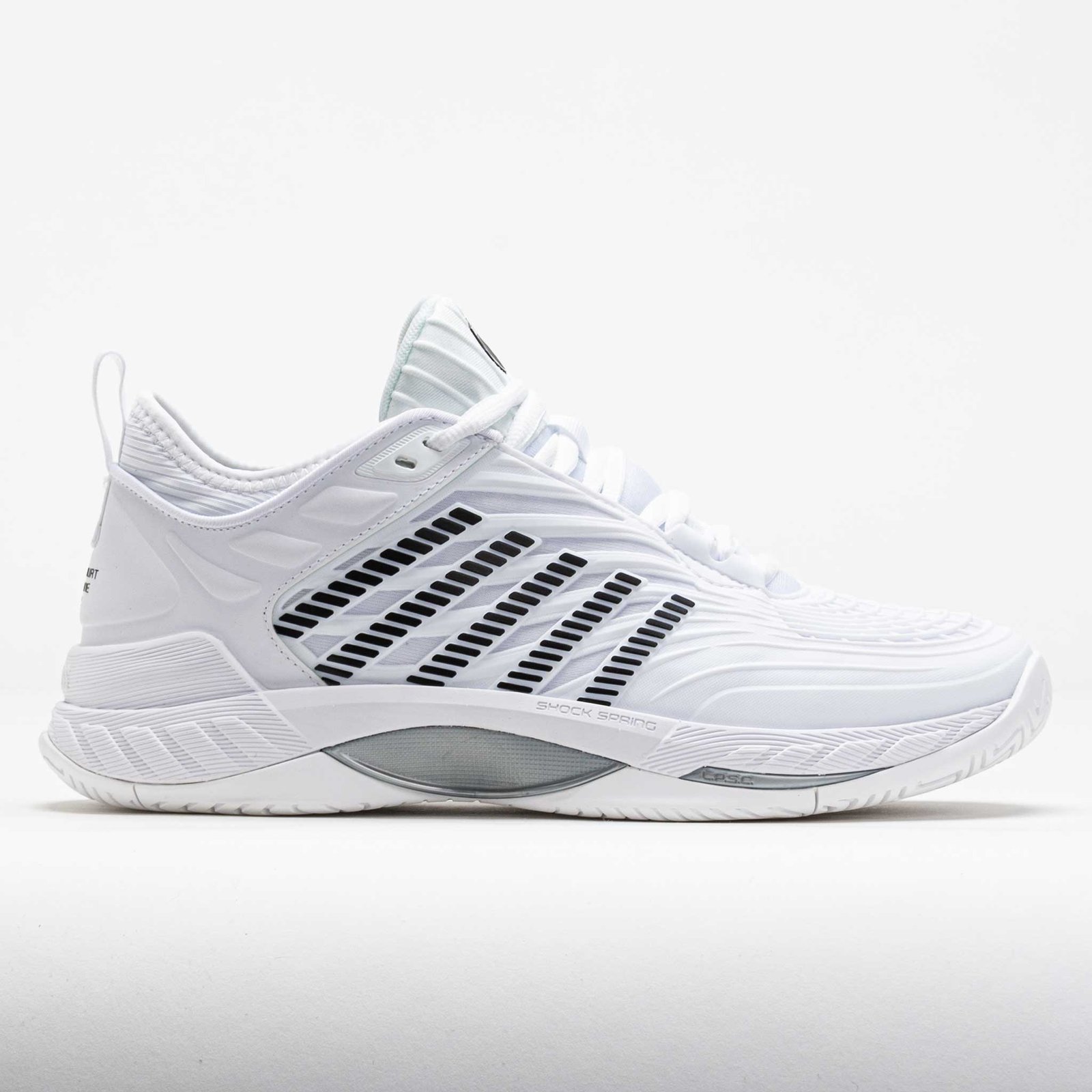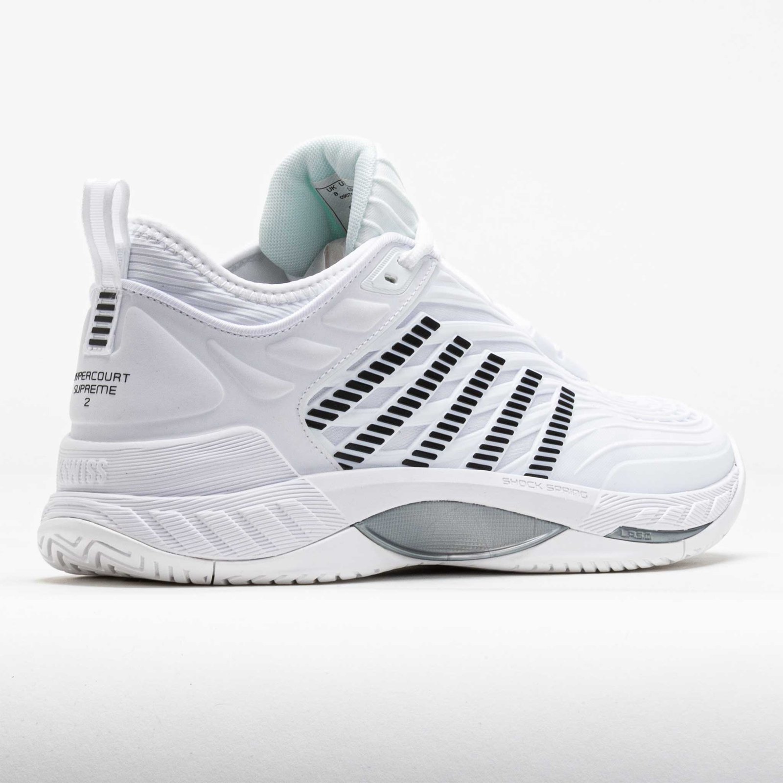 Reach your potential in the K-Swiss Hypercourt Supreme 2! This tennis shoe keeps you comfortable with a secure fit. extra durability. and improved support. Stay protected while sprinting around the court in the Durawrap X upper. The dual-density midsole features a lightweight Surgelite top layer and a Shock Spring top layer for quick reactions. Enjoy traction and durability on any surface under the DragGuard 7.0 rubber outsole. Soft. light and responsive. the K-Swiss Hypercourt Supreme 2 brings you to the ball faster!