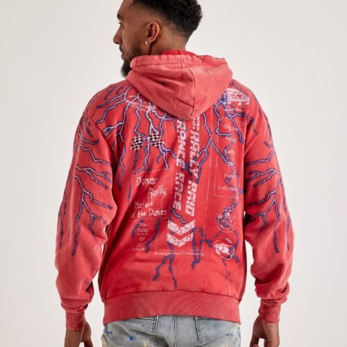 The Majestik Skull Head Tapestry Mix Hoodie is a piece of wearable art. This men’s sweatshirt has an oversized fit and features a stand-out design on the front.