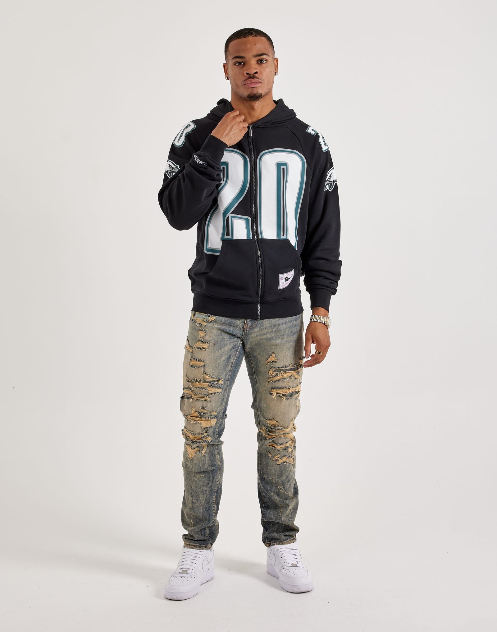 Rep your team in retro style with the Mitchell & Ness NFL Maxxed Out Raglan Eagles Brian Dawkins Hoodie. Featuring bold throwback graphics, raglan sleeves, and soft fleece fabric, it delivers all-day comfort and vintage game-day energy.
