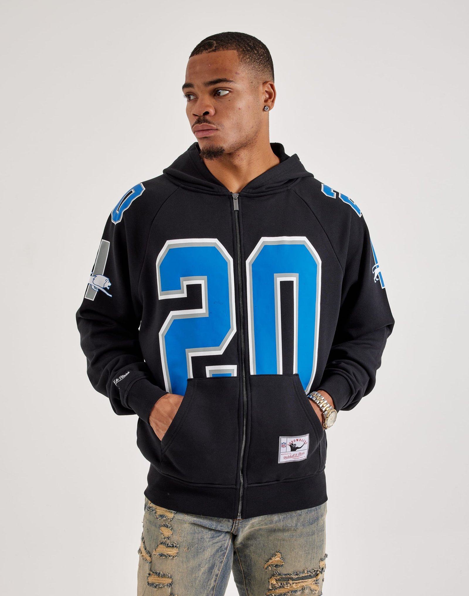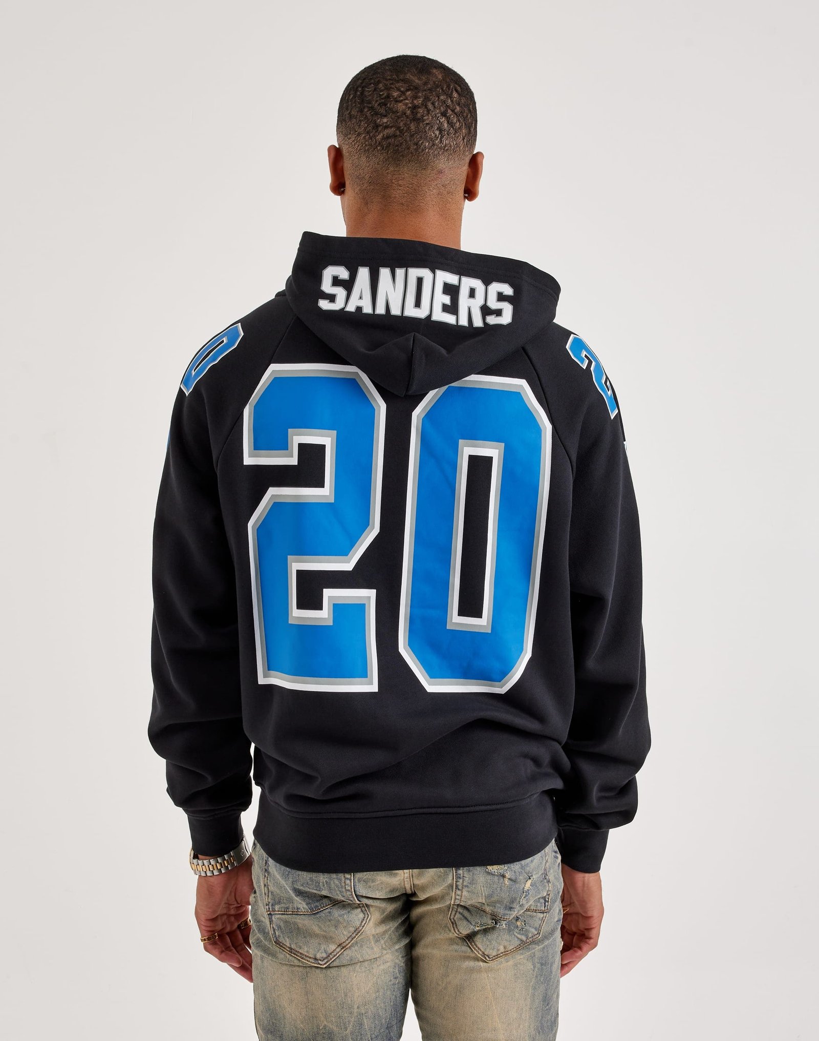 Rep your team in retro style with the Mitchell & Ness NFL Maxxed Out Raglan Lions Barry Sanders Hoodie. Featuring bold throwback graphics, raglan sleeves, and soft fleece fabric, it delivers all-day comfort and vintage game-day energy.