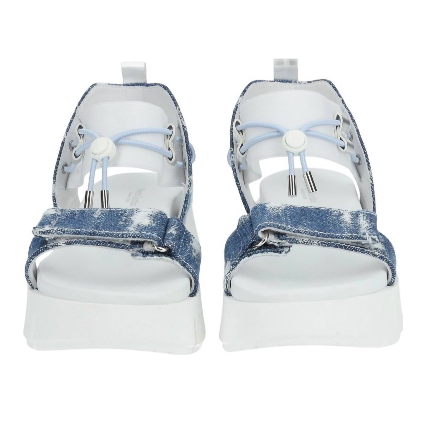 This sandal will take you from brunch to dinner and everything in between.Experience stylish comfort with the Women’s T Strap Jean Sandal by NeroGiardini, crafted in Italy. This denim sandal features a wedge heel and platform design, complemented by an open cap and a secure heel strap. The flexible sole and smooth leather insole ensure ease of wear, with a distinctive textile upper enhanced by distressed details. Slip-on style with an open toe, the platform heel measures a convenient 1.57 inches for a chic finish.