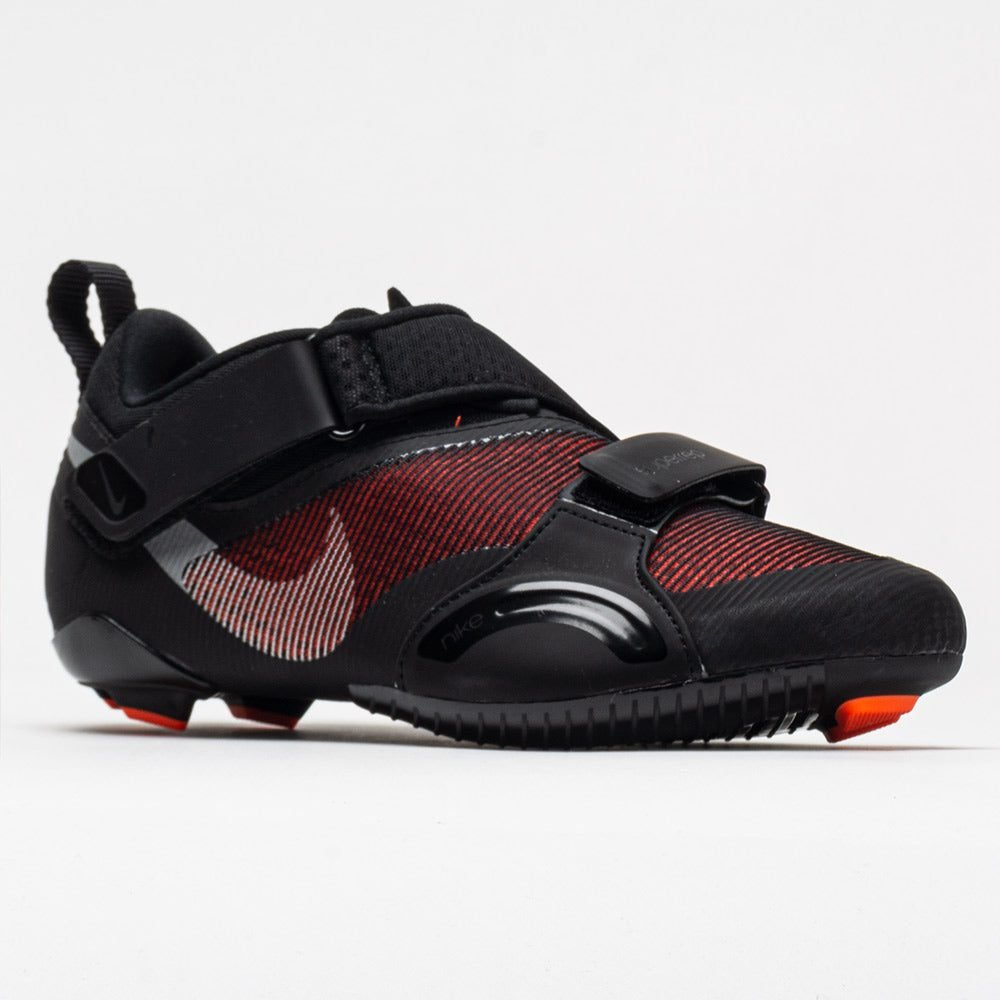 The Nike SuperRep Cycle offers a sleek and breathable design to handle the high-heat. fast-paced nature of indoor cycling. These training shoes use adjustable straps to secure your foot as you pedal forward. Enjoy an airy feel from the lightweight mesh upper that keeps your feet cool. Stay locked-in when you push the pace. thanks to the adjustable hook-and-loop straps. Rubber-tipped studs built into the bottom increase traction and prevent slips as you move to and from your bike. Strap down. clip in. and get ready to ride in the Nike SuperRep cycle!