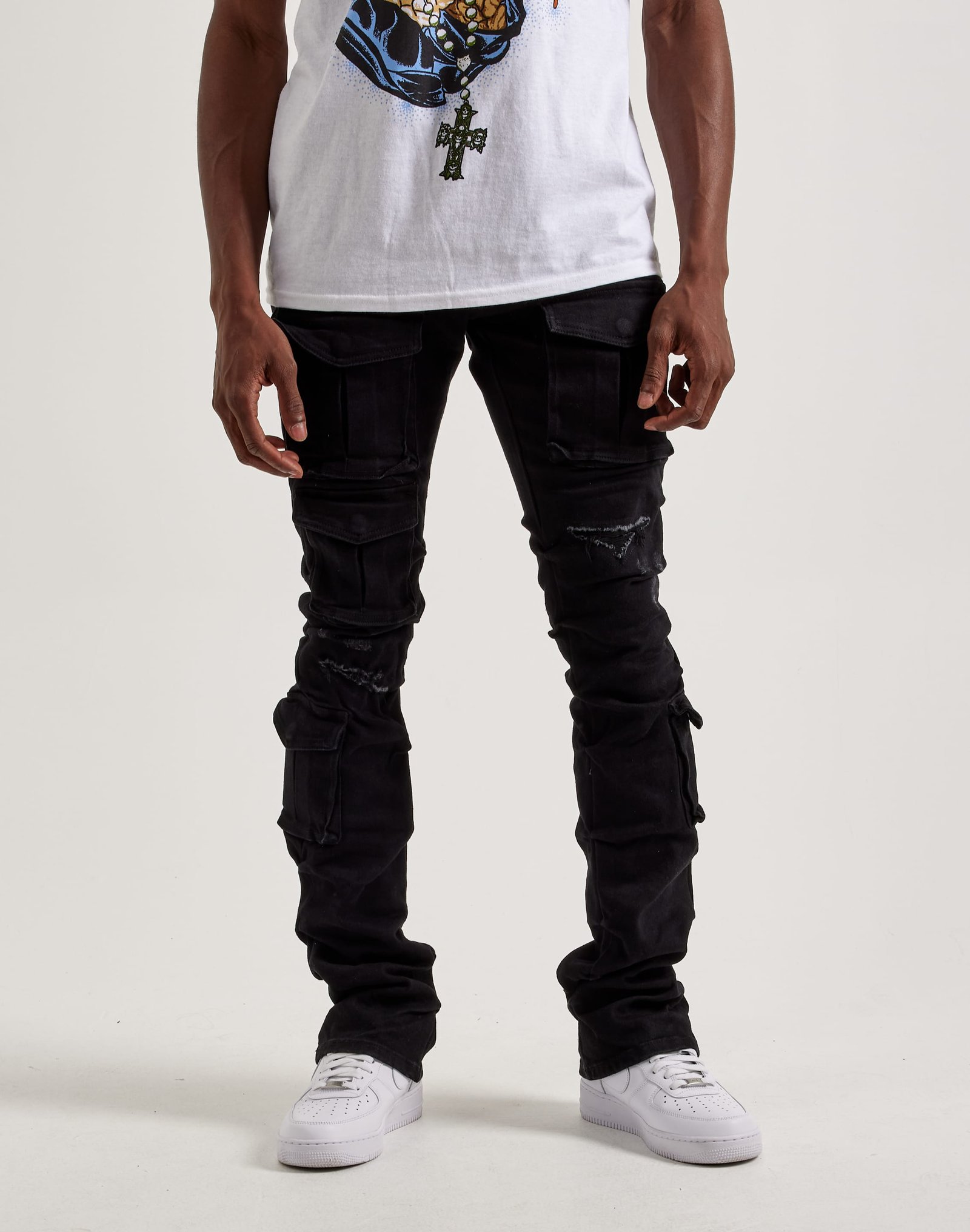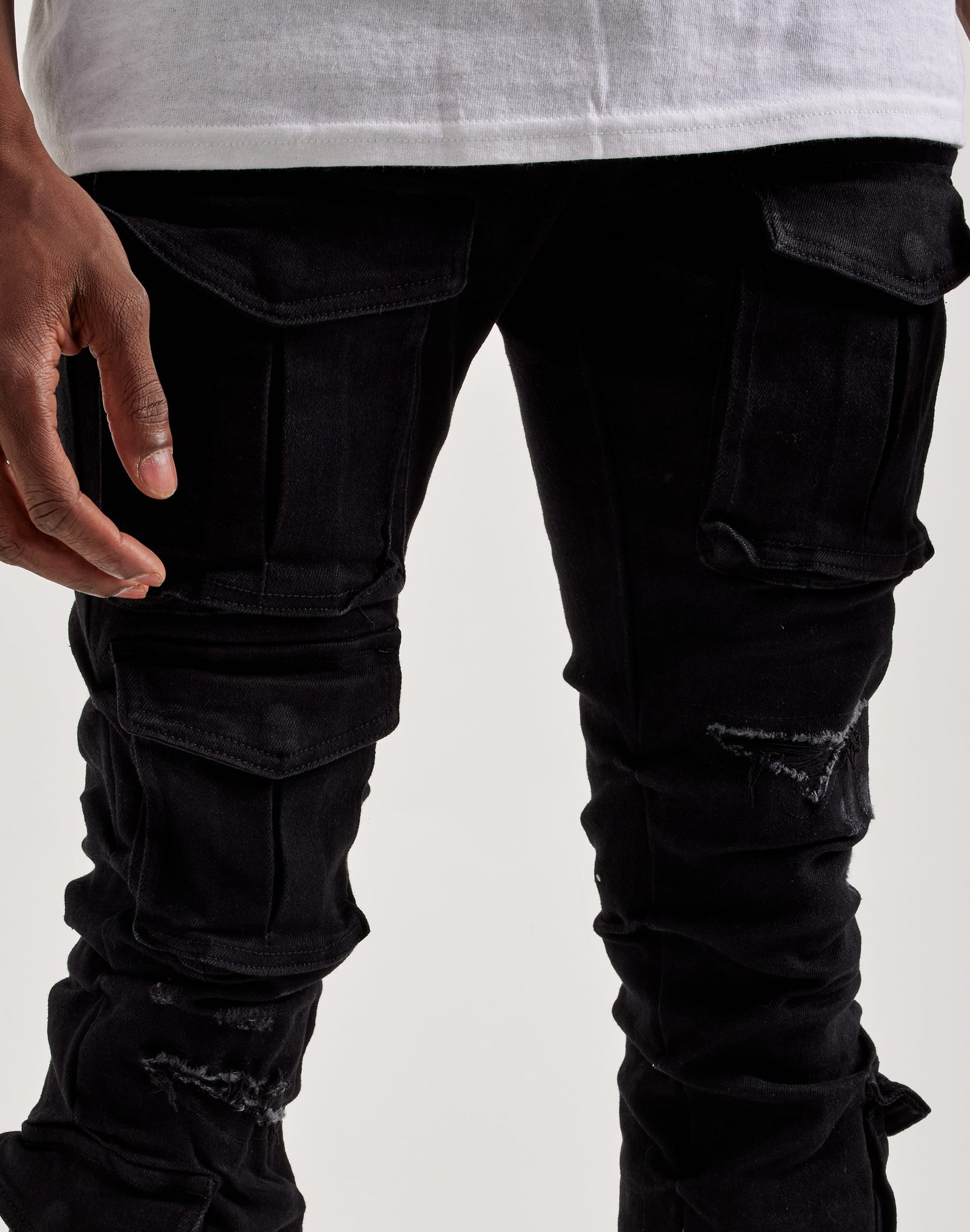 These denim pants feature practical utility pockets and a trendy stacked flare design, creating a fashionable and functional addition to your wardrobe. Elevate your casual style with this versatile and on-trend denim choice from Smoke Rise.