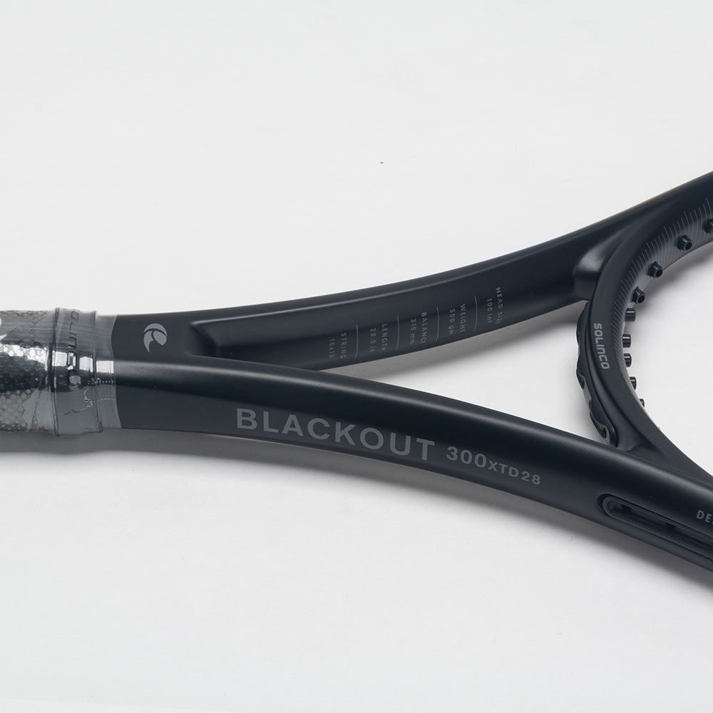 Fast, explosive and powerful, the Solinco Blackout 300 XTD+ is a dangerous weapon for intermediate and advanced players. Featuring an extended 28?? length, this tennis racquet provides extra reach, stability and power. Enjoy a plush feel at contact from the Liquid Crystal technology in the layup, which reduces vibrations and eases arm fatigue. The 40T Carbon Fiber technology at the three and nine o??clock positions increases the sweet spot while improving stability. If you??re an aggressive striker who likes to dictate pace of play, control the court with the Solinco Blackout 300 XTD!