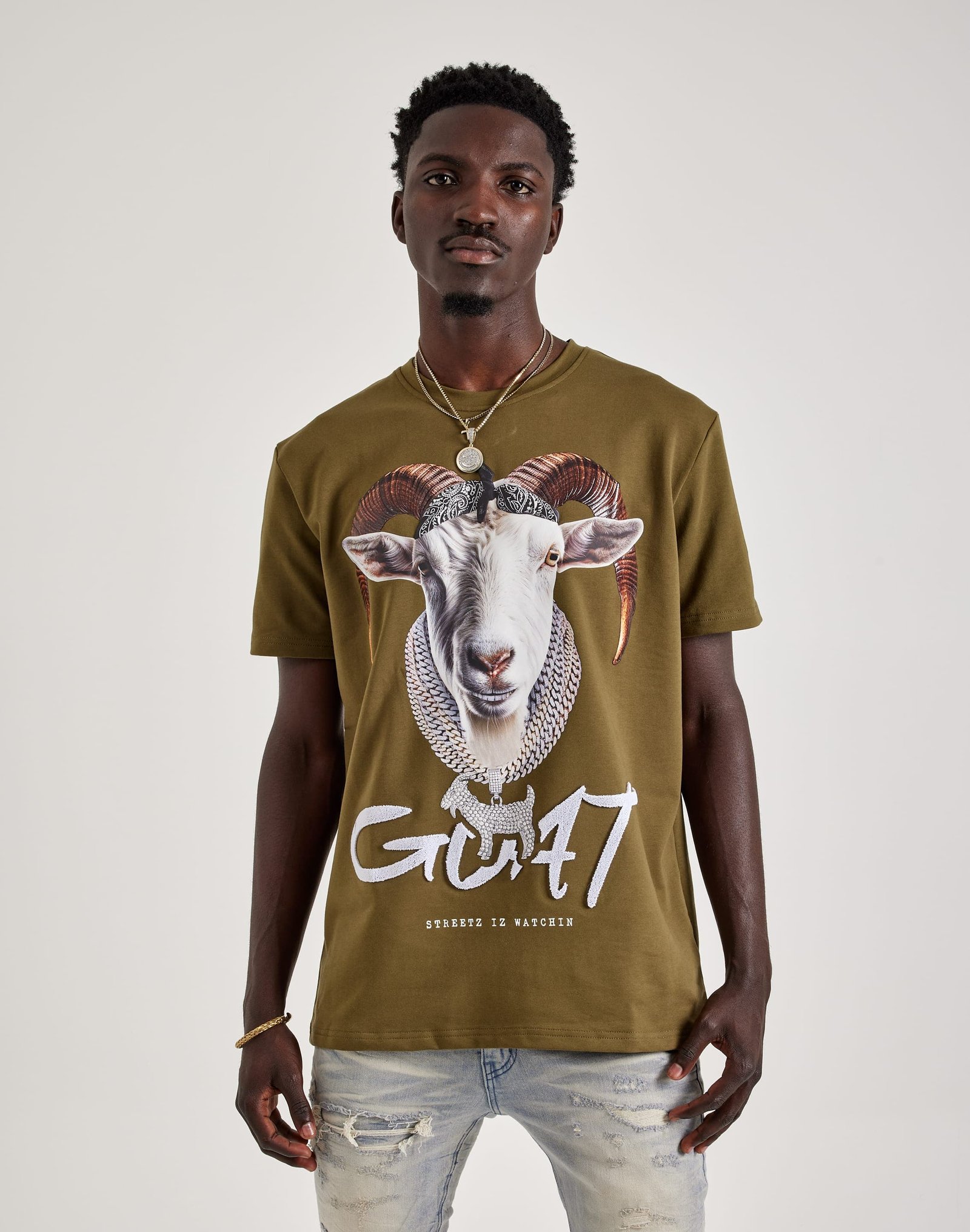 Is your style feeling stale? Freshen it up with the Goat Tee from Streetz Iz Watchin. This men’s T-shirt is crafted from soft cotton and features bold printed graphics.